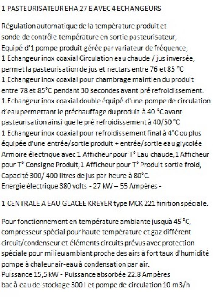 3)1 ensemble de pasteurisation neuf (caractéristiques techniques en photo). Prix 23 millions