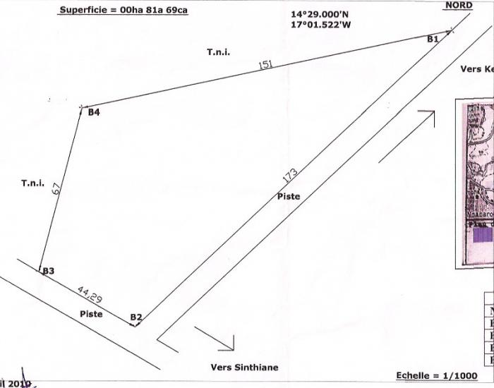 Thu 2 Aug à 17h59Reference annonce TNG008 Domaine national constructible. 4000 m² : 2 pistes d'angles, 1 mur mitoyen. Possibilité division Situation Situé à l'entrée de N'Guerig...