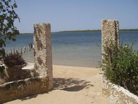 Auberge pieds dans l?eau. Sur le site exceptionnel de l?Ile de Mar Lodj (Sine-Saloum)