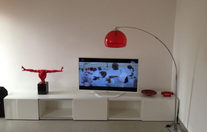 Vous y trouverez les équipements suivants : écran LCD 40 pouces dans le salon et la chambre, réfrigérateur/congélateur, bouilloire, grille pain, machine a café, micro ondes, lave linge, gazinière, internet, chaines canalsat, climatisation dans la chambre et le salon. N'hésitez pas à me contacter par mail de préférence ou au +33 777 22 00 64 ou au 77 788 36 65 afin d'avoir d'autres photos et plus de renseignements. Le prix de la location varie entre 25 000 et 36 000 CFA hors charges, selon la durée. L'électricité est facturé au prix de 150 CFA du kWh.