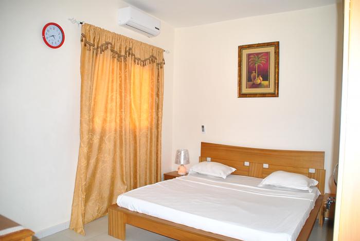 Vous aurez à votre disposition TV plasma 102 chaines canal horizon, téléphone fixe gratuit, wifi gratuit et illimité, salon et chambre entièrement équipés et climatisés salle de bain et WC avec chauffe-eau, groupe électrogène, cuisine gazinière avec four micro-ondes, évier, machine à café, vaisselle et linge de maison, réfrigérateur, changement draps et serviettes tous les jours ,sécurité 24h/24h. Possibilité de réduction pour long séjour.