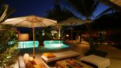 jardin arboré avec piscine et terrasses en coquillé, paillotte, garage, deux logements pour gardien et femme de service équipés de sanitaire, locaux annexes : groupe électrogène, gaz et compteurs, rangement piscine, sur-presseur.