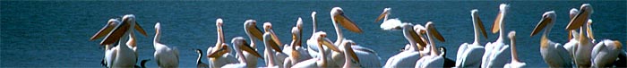 d'eau recouvertes de nuées de flamants, de pélicans et autres grues cendrées