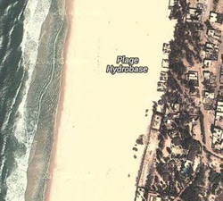 Photo à droite : Vue Google Maps du phénomène de la barre sur la plage de l'hydrobase à Saint-Louis