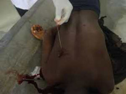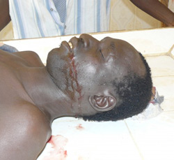 Photo à droite : Victime d'une des exactions commises près de Diouloulou en janvier 2014