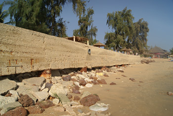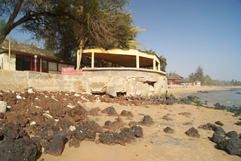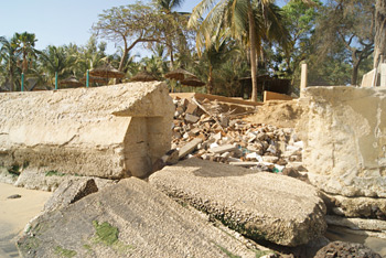 Photo ci-dessus : Des batîments scandaleusement construits sur une plage censée être publique sont emportés par la mer. Quand enfin l'océan aura fini son travail, pourquoi pas fignolé par un véritable tsunami, Saly retrouvera la sérénité d'il y a 20 ans.