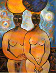 | Aïssa Dione Née en 1952 à Nevers en France, vit à Dakar depuis l'âge de 18 ans. Ecole des Beaux Arts de Chelles (77, France) Ecole des Beaux Arts de Dakar (Sénégal) Aïssa Dione se partage entre les tissus et la peinture. Une peinture figurative expressive et puissante qui donne une image très éloignée de "sa période batik". La femme d'affaire, créatrice de mode, devient alors l'artiste, pleine d'une énergie qui lui donne à chaque toile le courage de se battre avec elle-même et sa peinture. |