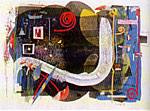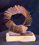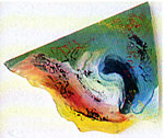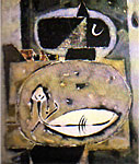 | "Kré" Mbaye Né en 1949, à Dakar (Sénégal) Autodidacte formé à l'Atelier de Recherches Plastiques de Pierre Lods, Kré est un artiste torturé, profond, qui, en dehors de périodes fulgurantes, peint peu. Ses derniers travaux, des petits collages, contrastent avec ses productions antérieures plus amples. |