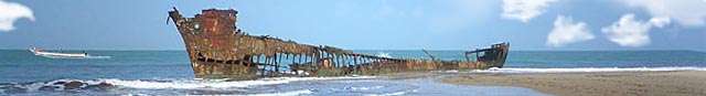 Photo : épave sur la plage d'Abéné